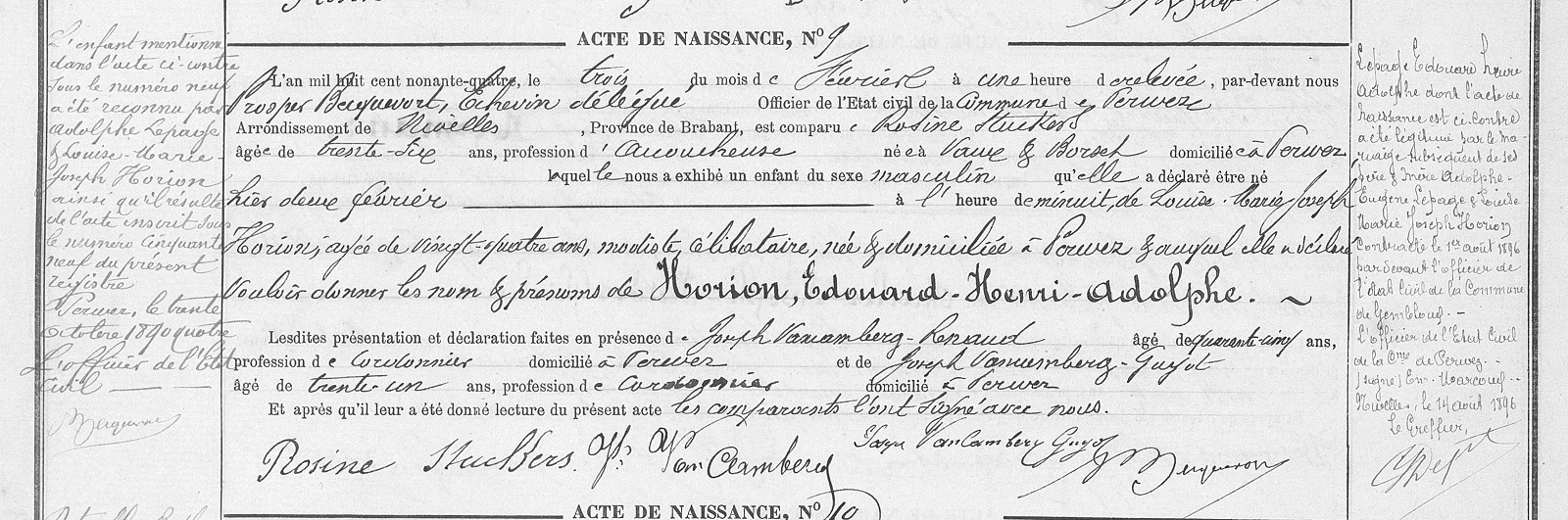 Acte de naissance à Perwez (Perwijs), BW, BE (Source [358])