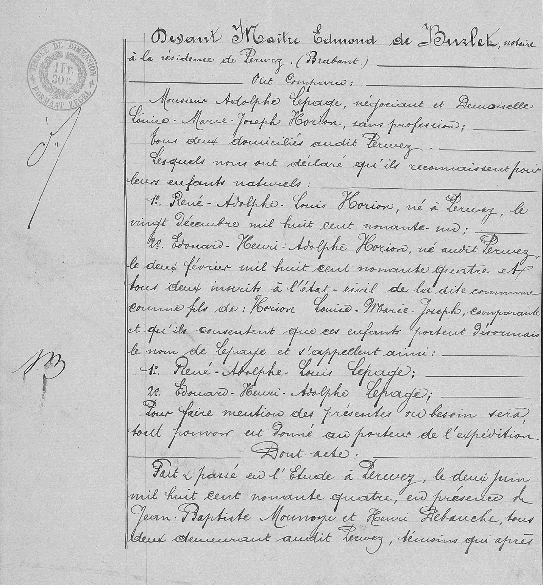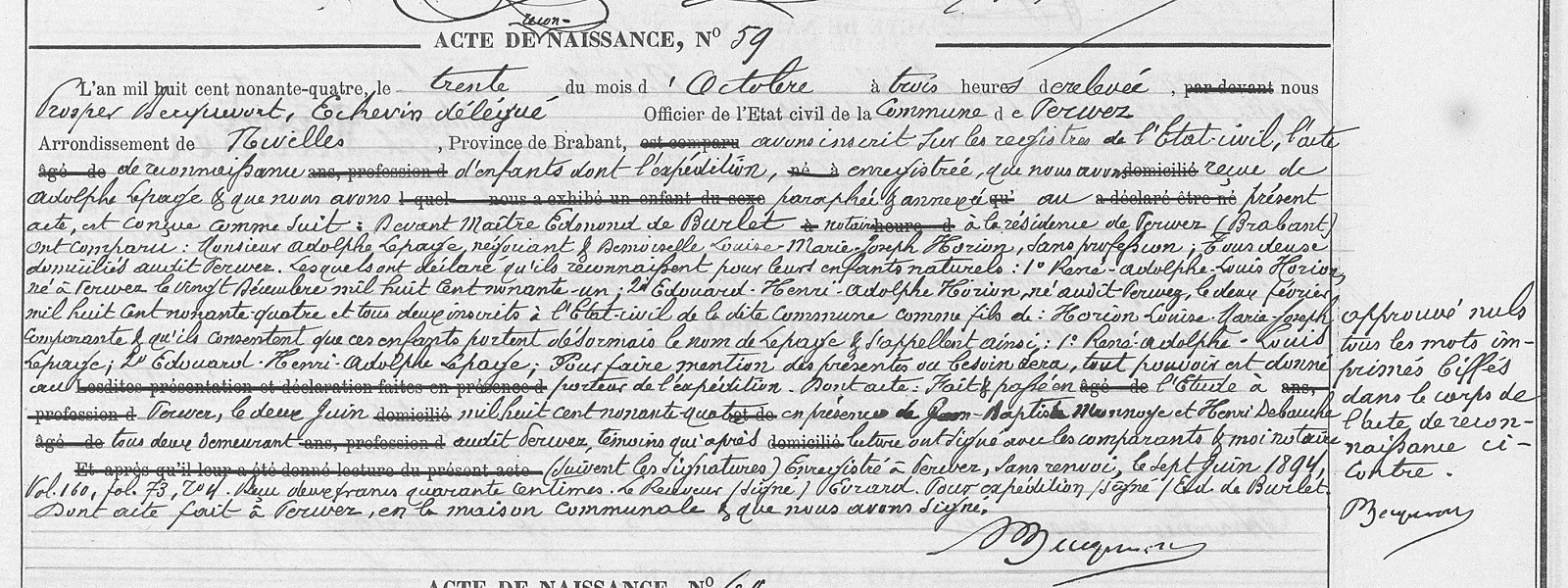 Actes de reconnaissance à Perwez (Perwijs), BW, BE (Source [358])