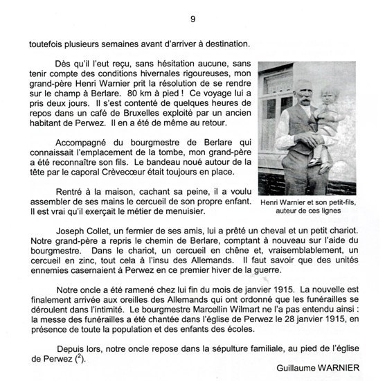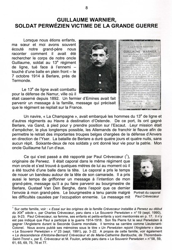 Extraits du n° 107 du journal "Souvenir Perwézien"