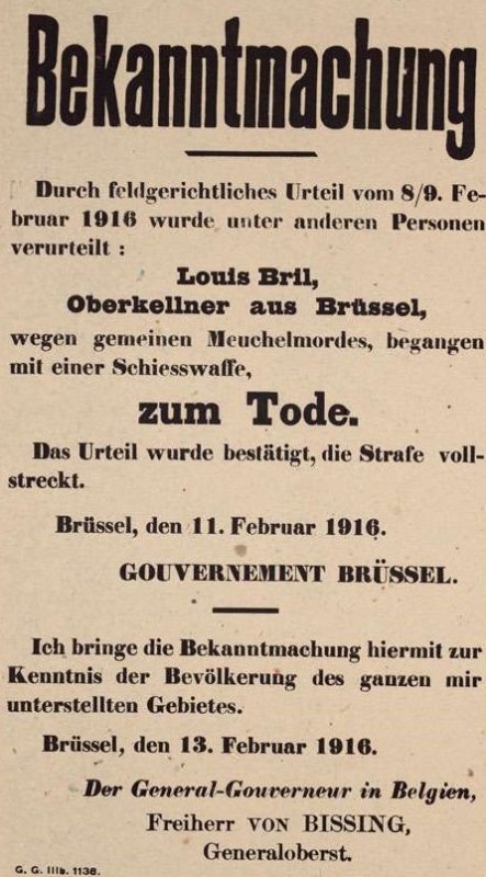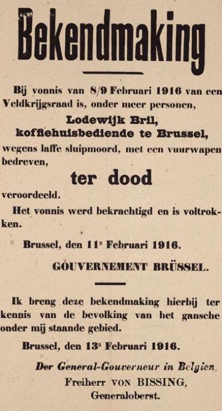 eerder Edith CAVELL werd geëxecuteerd. Begin januari had BRIL een