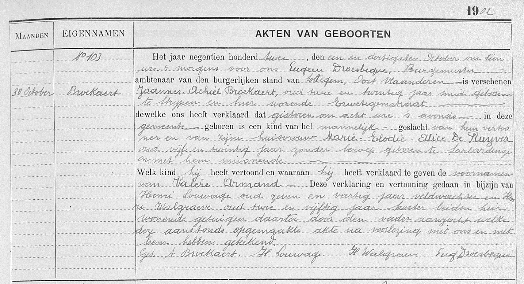 Geboorteakte te Zottegem, OV, BE - Acte de naissance à Zottegem, OV, BE