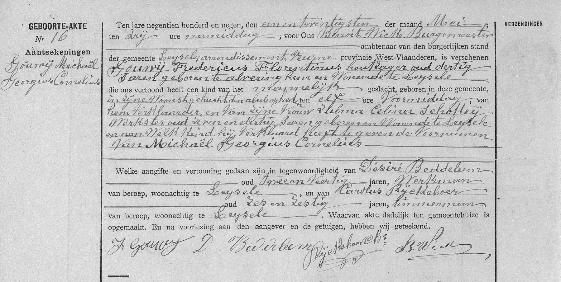 Geboorteakte te Leisele, WV, BE (Bron [358]) (Het beeld downloaden