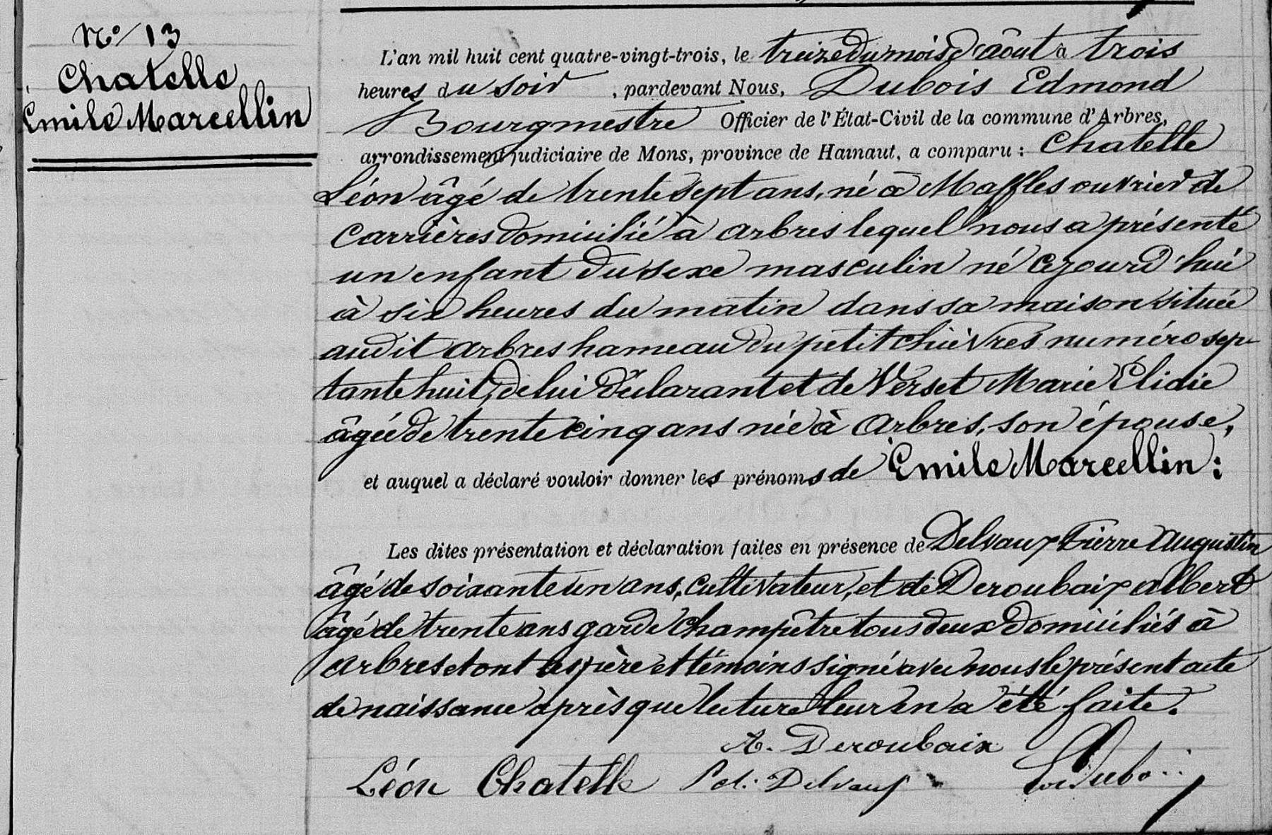 Acte de naissance à Arbre, HT, BE (Source [358])