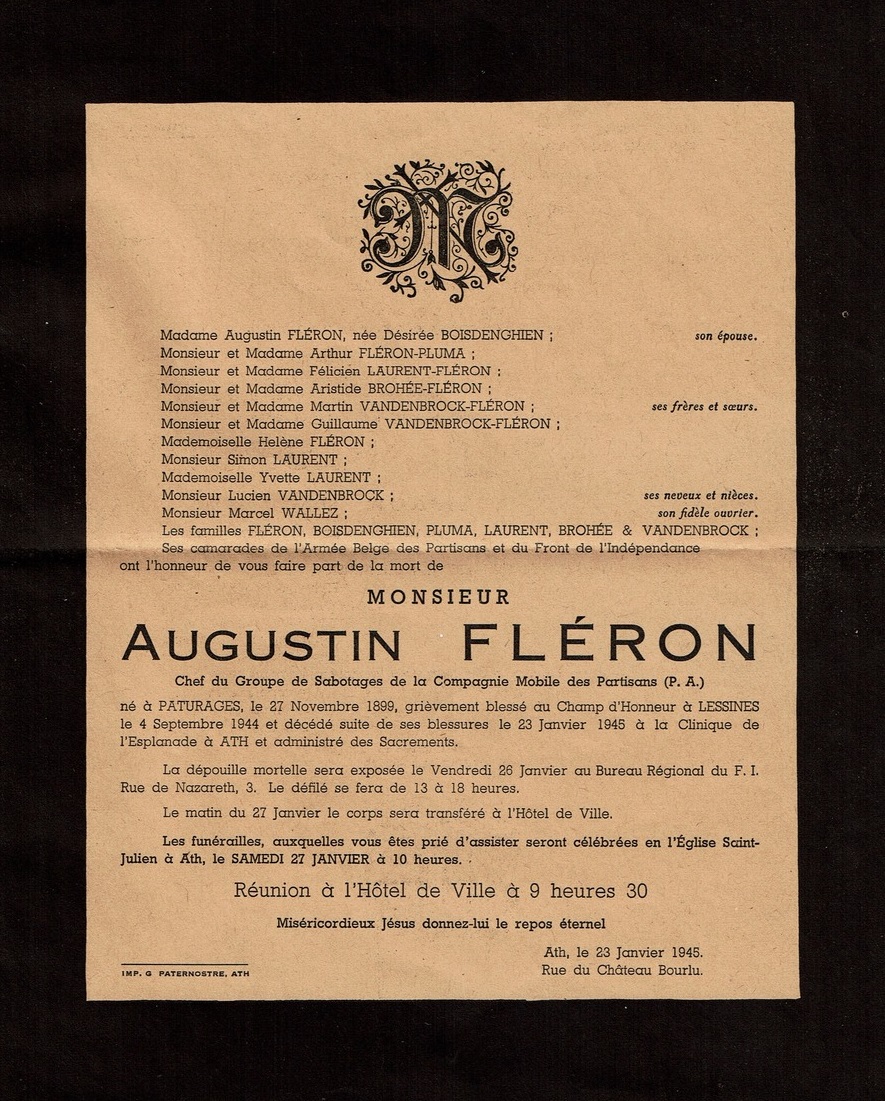Souvenir des victimes le l'Armée belge des Partisans (section d'Ath)