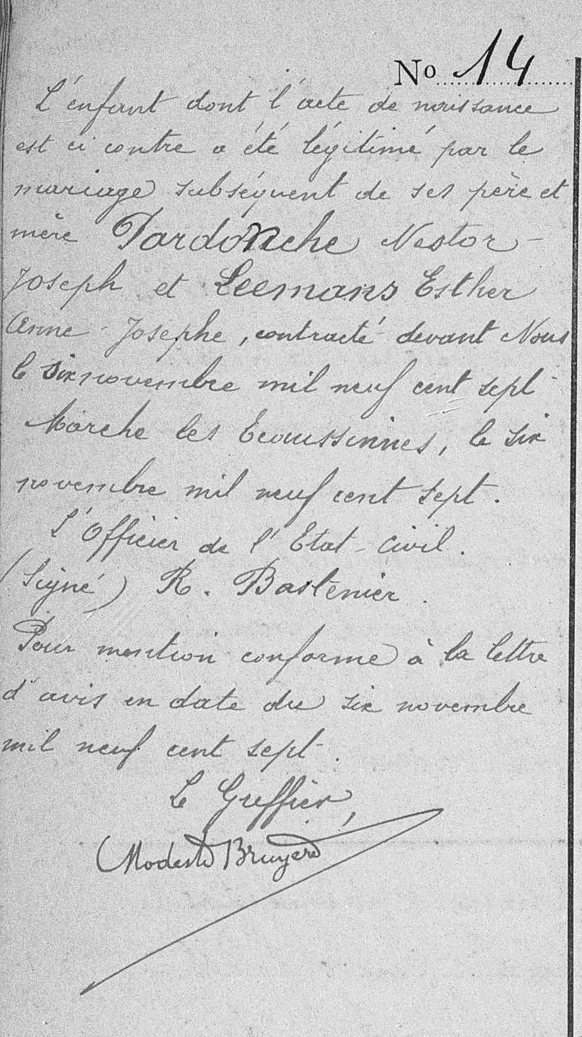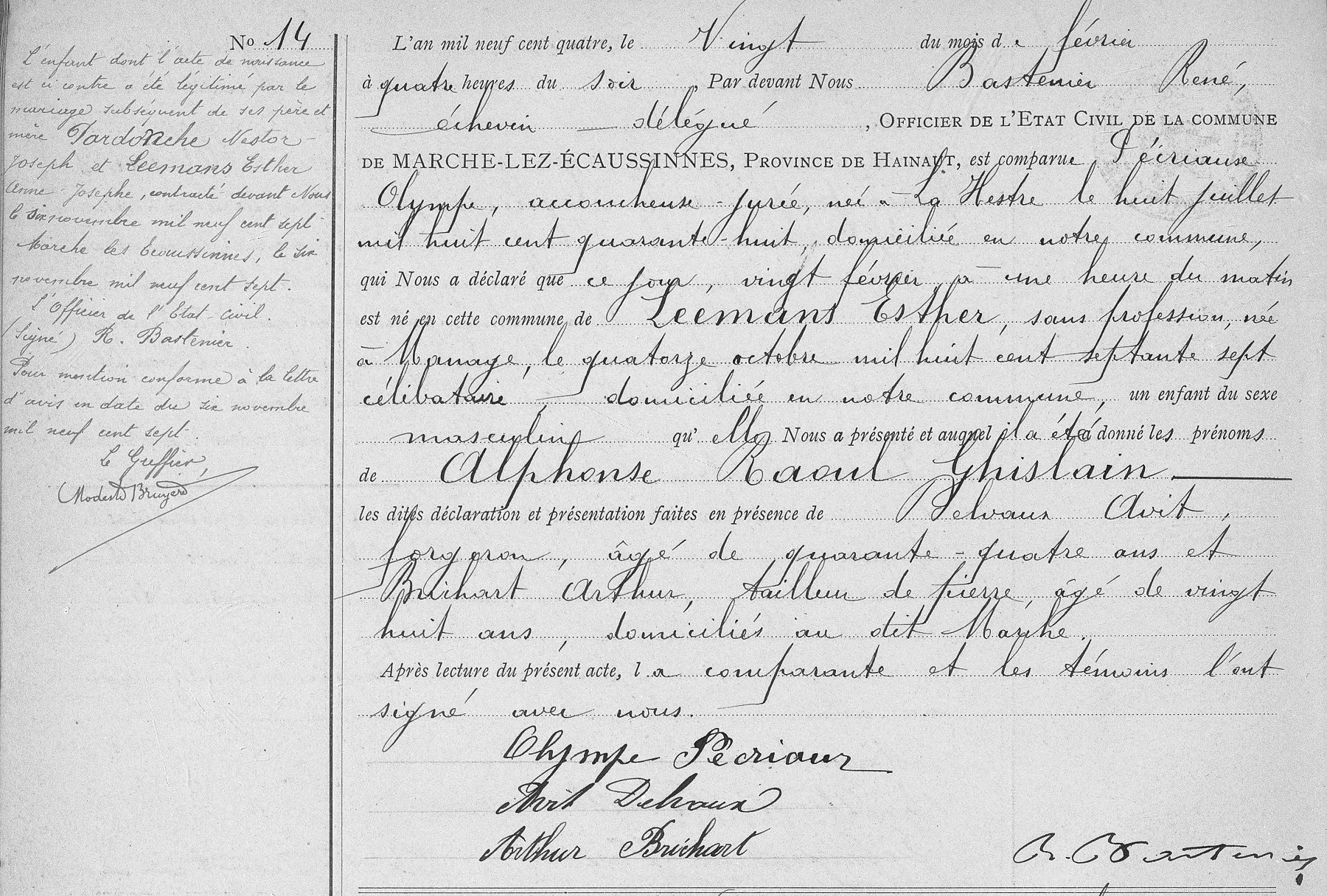 Acte de naissance à Marche-lez-Ecaussinnes, HT, BE (Source [358])