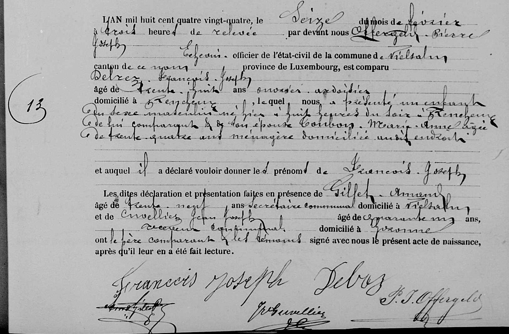 Acte de naissance à Rencheux (Vielsalm), LU, BE (Source [358])