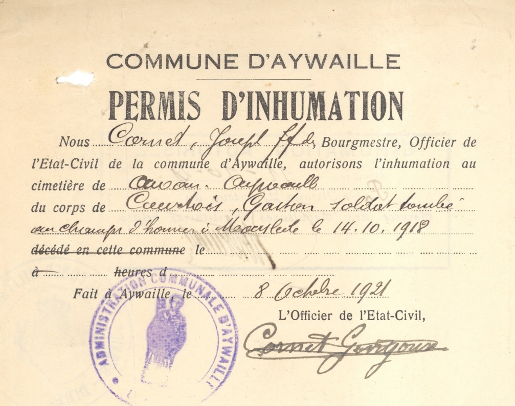 Permis d'inhumation