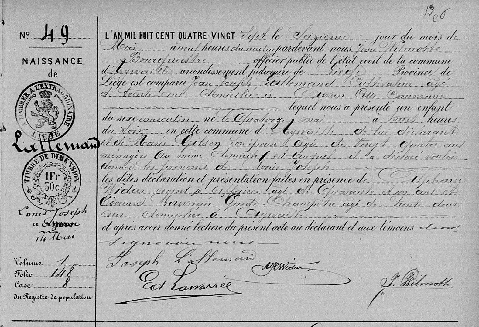 Acte de naissance (Source [358]) (Télécharger l'image pour la