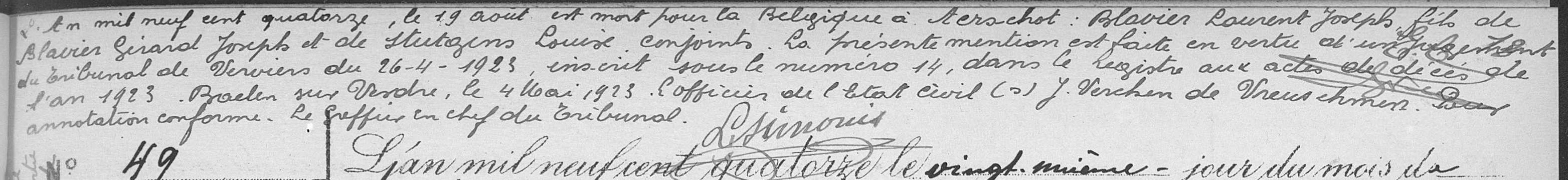 Transcription acte de décès à Baelen, LG, BE (Source [358]) (Télécharger