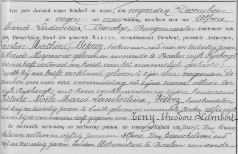 Balen, AN, BE: Acte de naissance n° 253 de l'année 1909 (Source