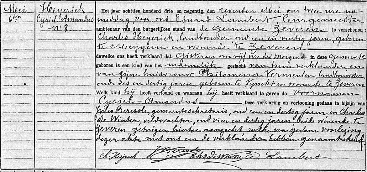 Geboorteakte te Zeveren, OV, BE (Bron [358])