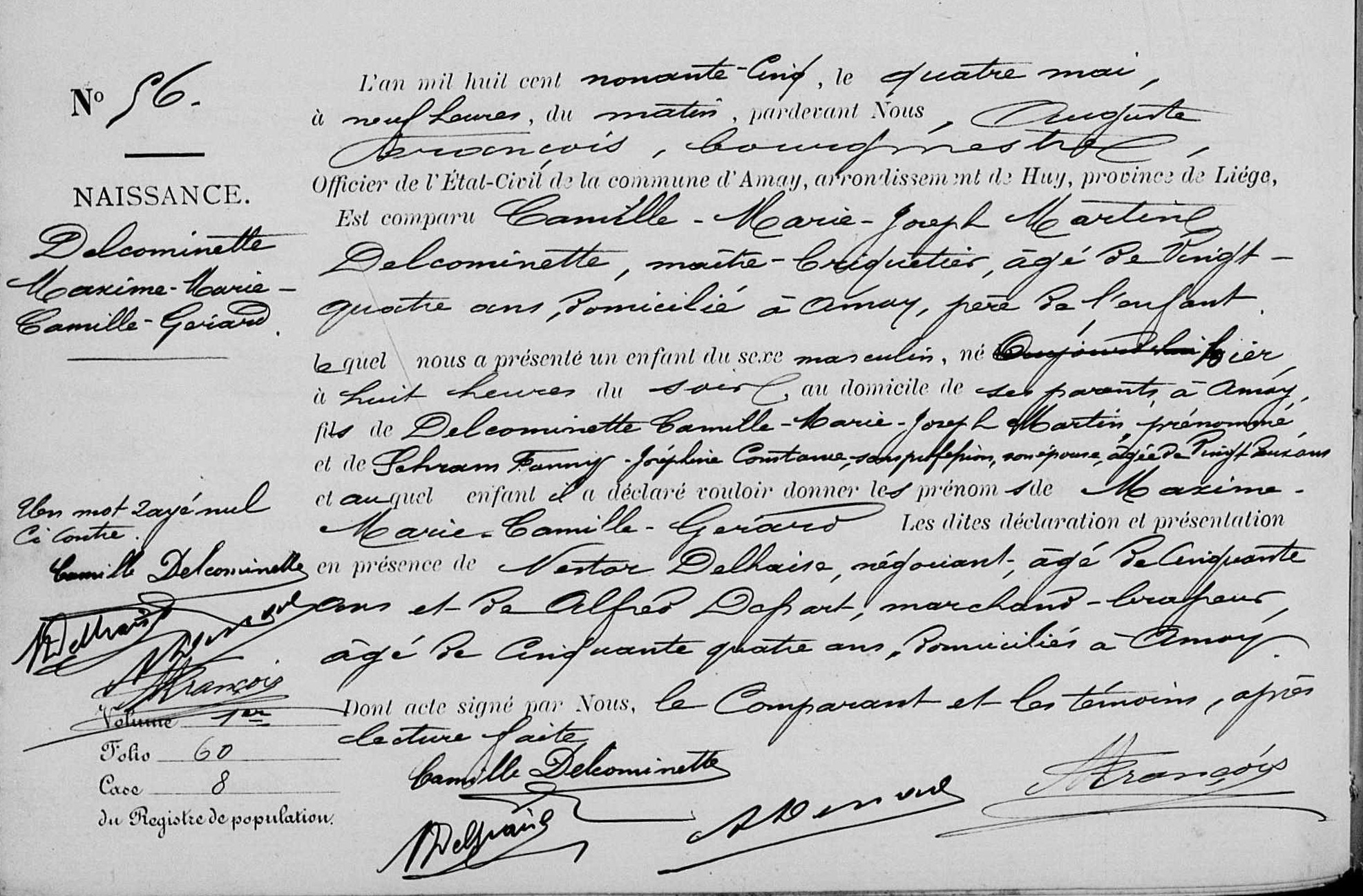 Acte de naissance à Amay, LG, BE (Source [358])
