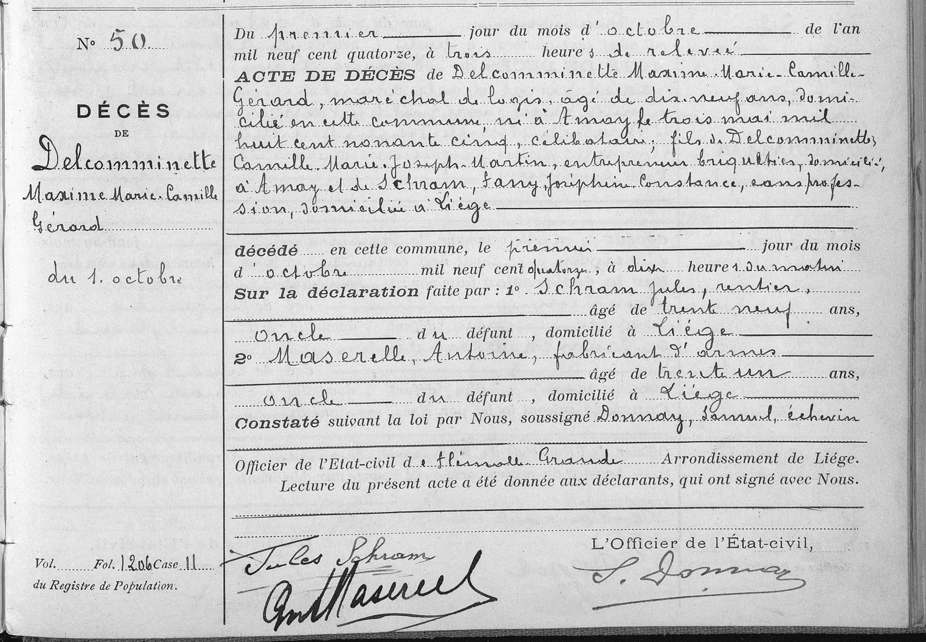 Acte de décès à Flémalle-Grande, LG, BE (Source [358])