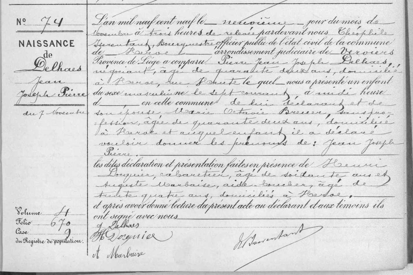 Acte de naissance à Herve, LG, BE (Source [358]) (Télécharger