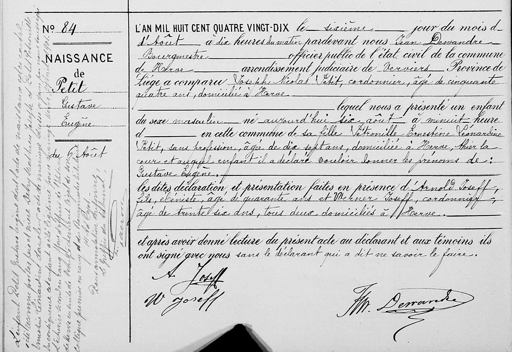 Acte de naissance à Herve, LG, BE (Source [358]) (Télécharger