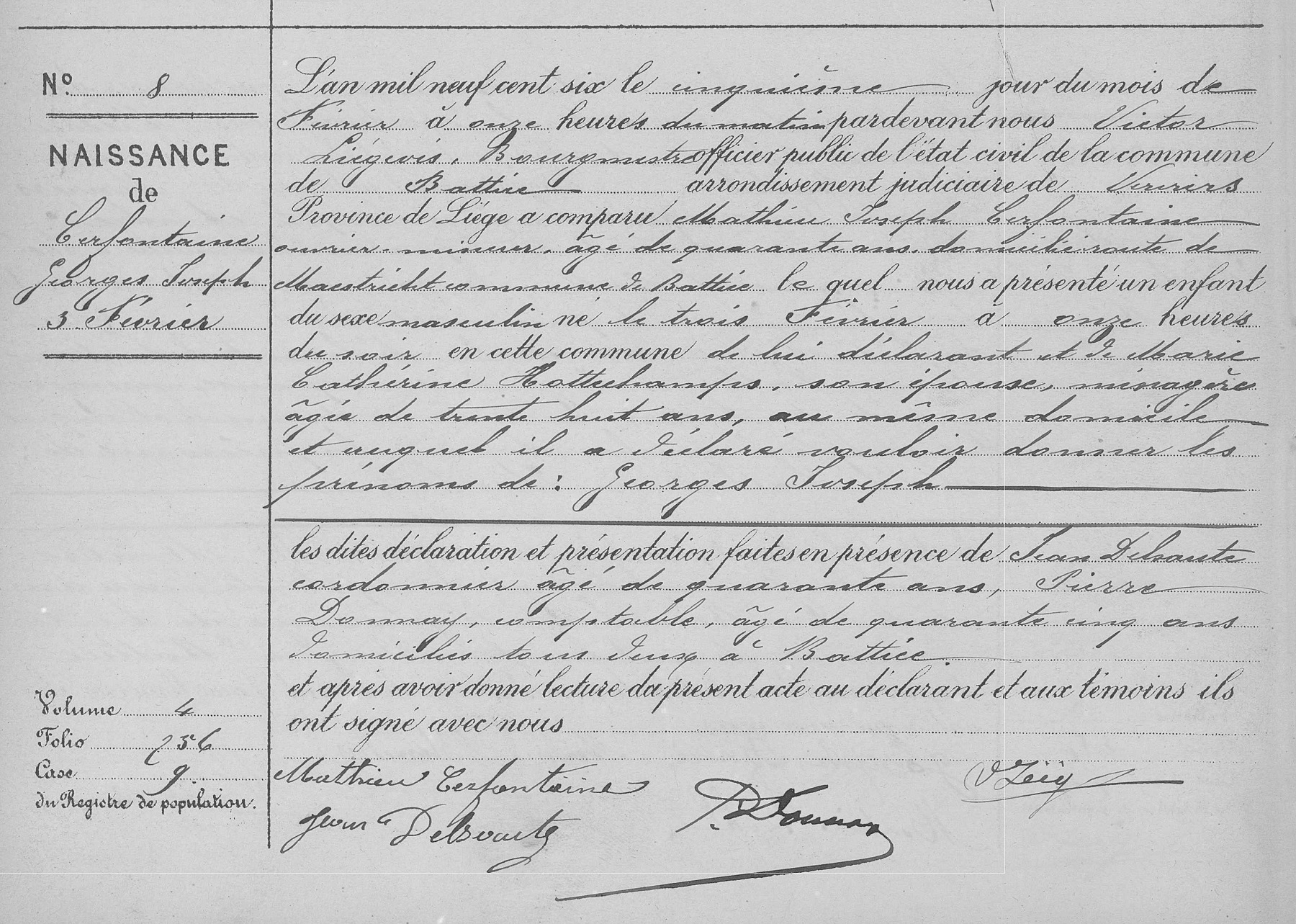 Acte de naissance à Battice, LG, BE (Source [358]) (Télécharger