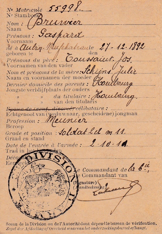 Carte d'identité militaire (Source: Philippe TYCHON)