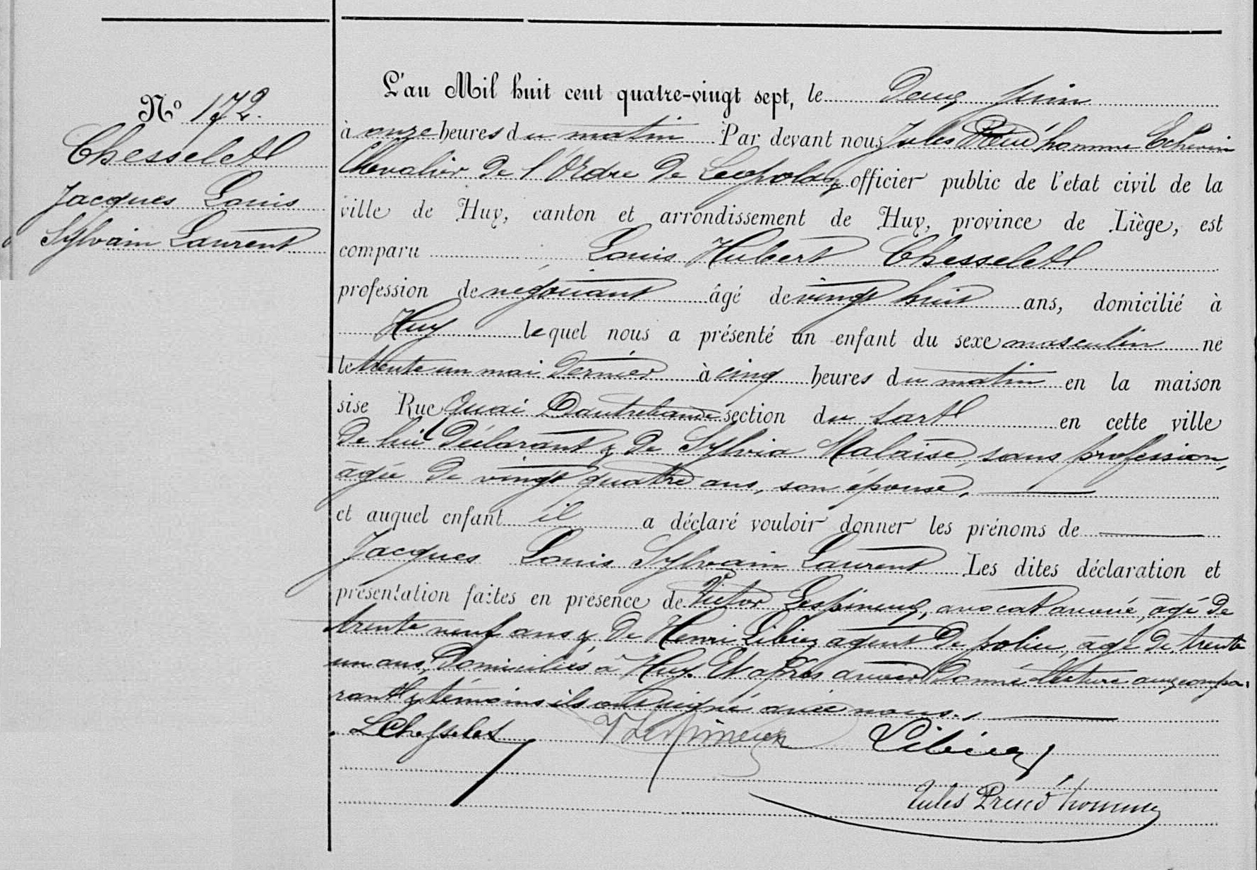 Acte de naissance à Huy (Hoei), LG, BE (Source [358])