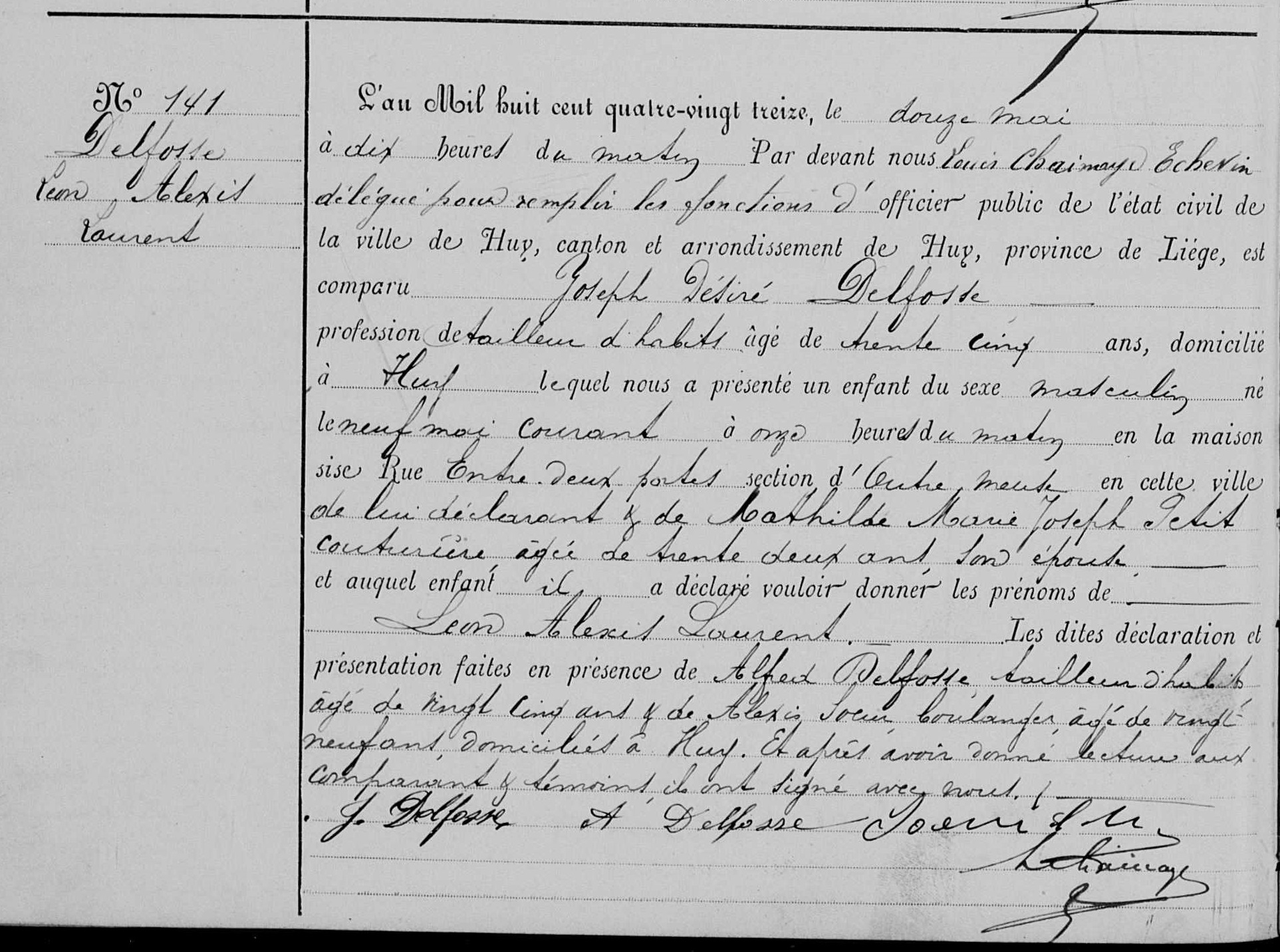 Acte de naissance à Huy (Hoei), LG, BE (Source [358])