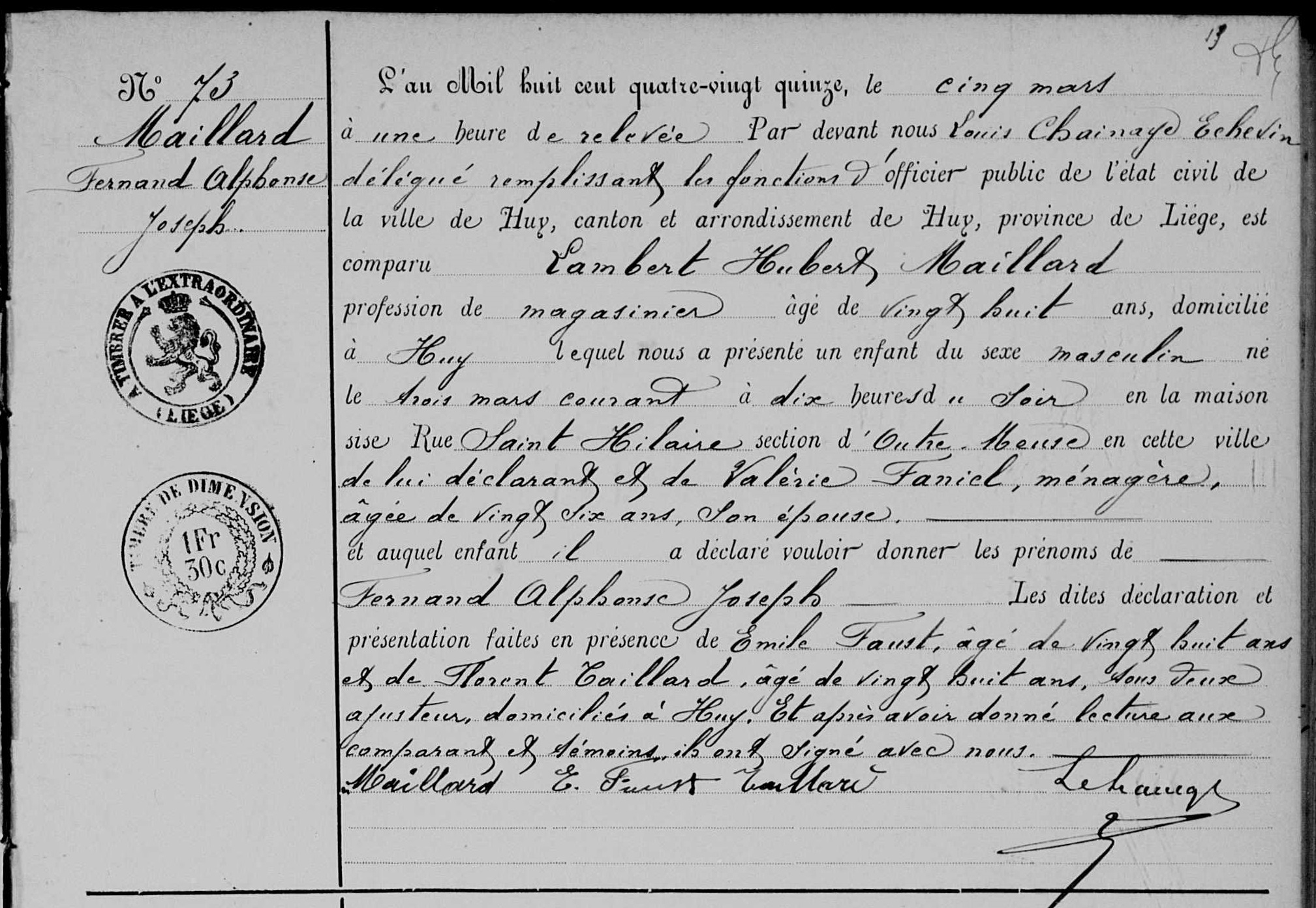Acte de naissance à Huy (Hoei), LG, BE (Source [358])