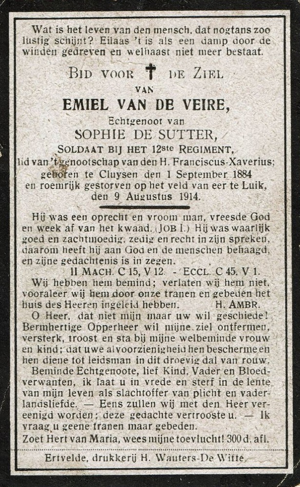 Memento voor de militaire slachtoffers van W.O. I van Kluizen, OV,