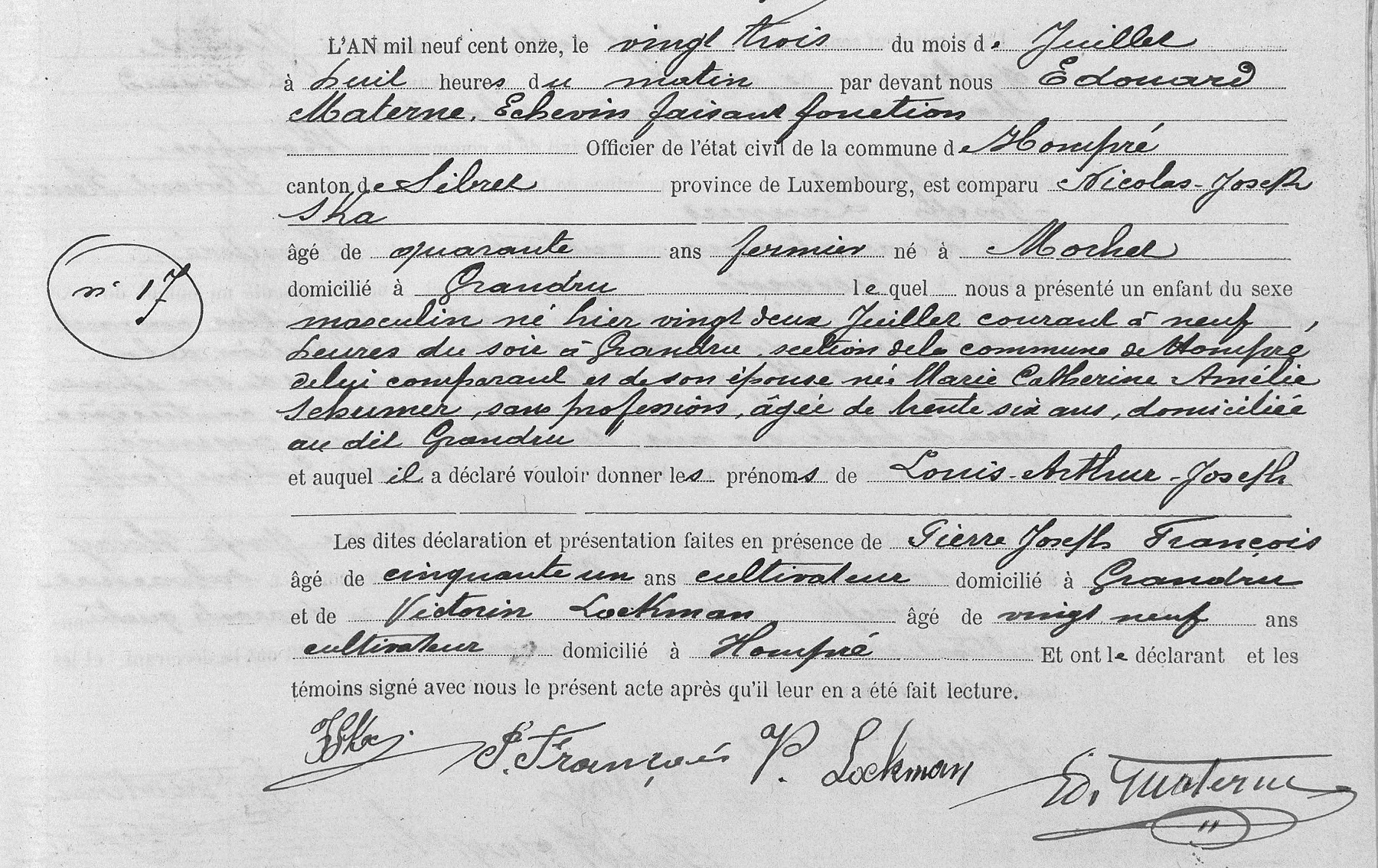 Acte de naissance à Hompré, LU, BE (Source [358])
