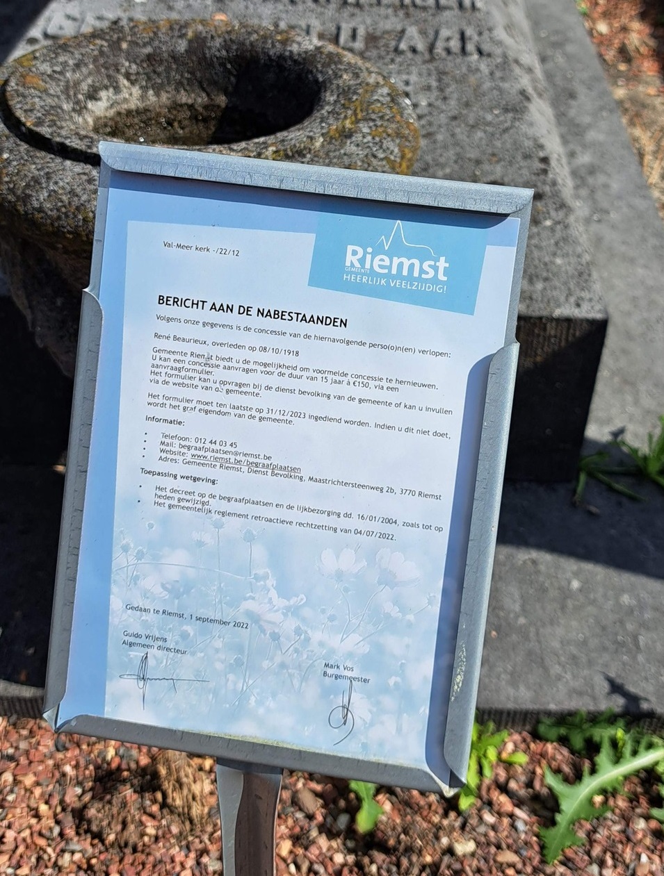 Het grafteken voor René BEAURIEUX bestaat uit een zerk en een