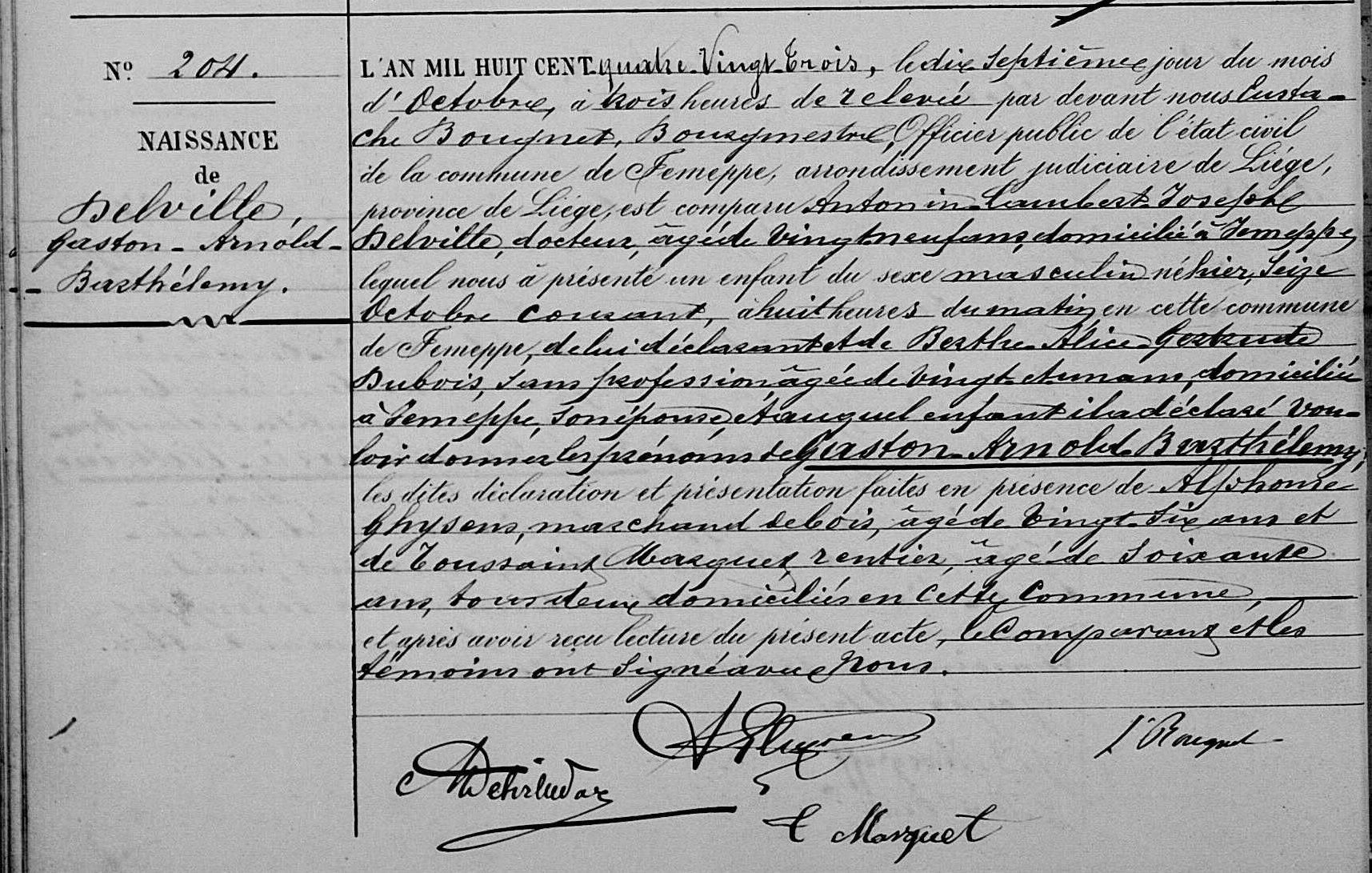 Acte de naissance à Jemeppe-sur-Meuse, LG, BE (Source [358])