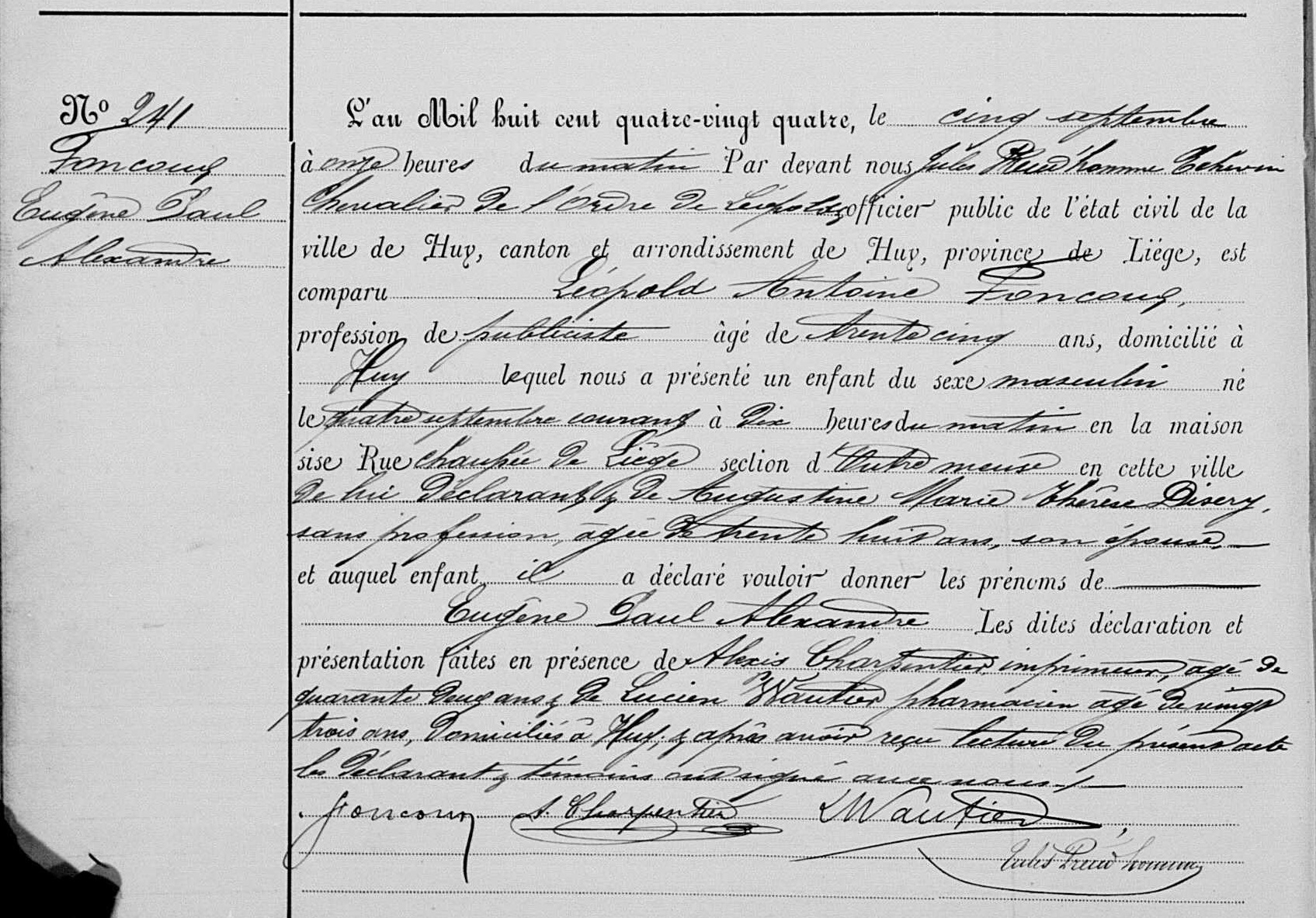 Acte de naissance à Huy (Hoei), LG, BE (Source [358])
