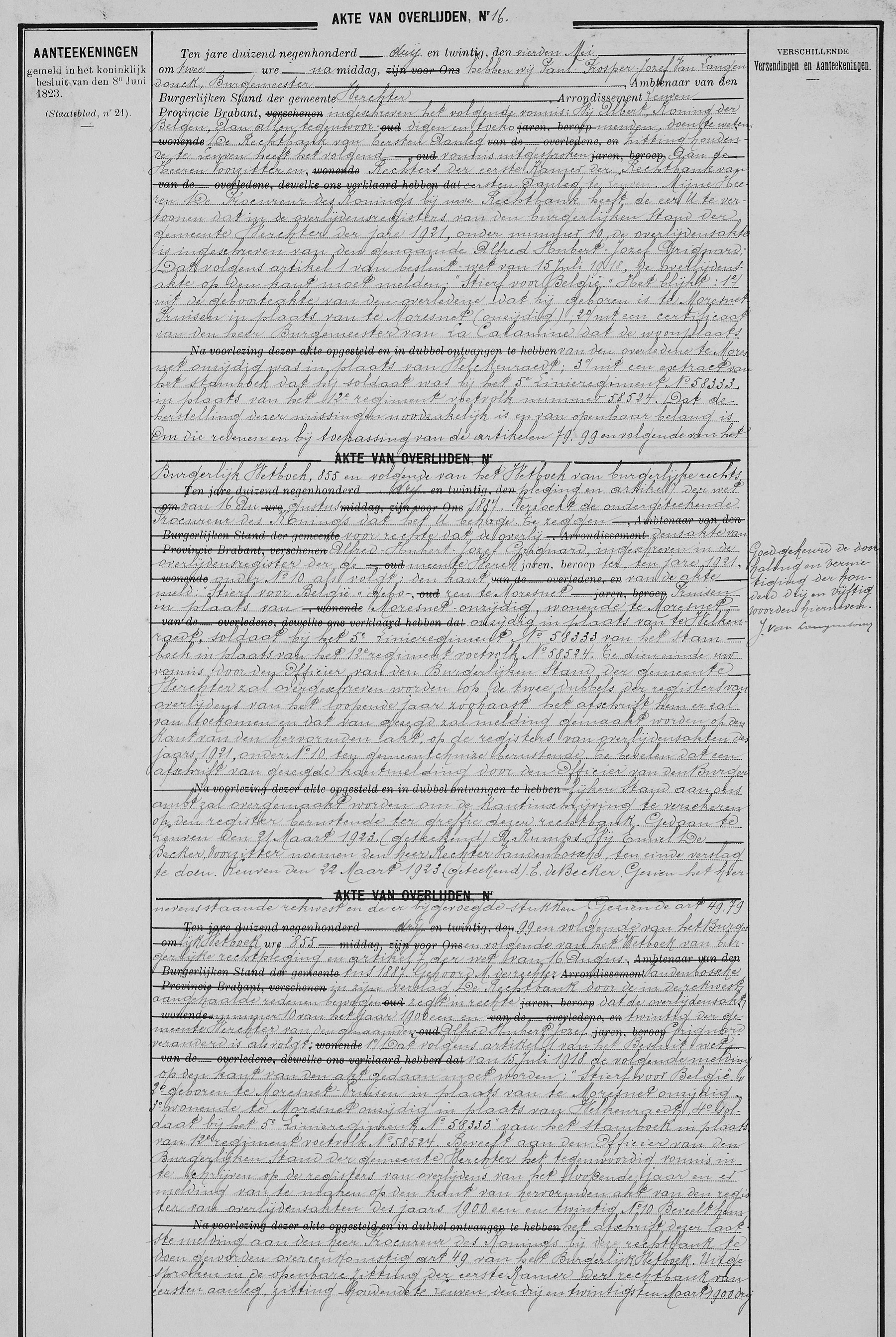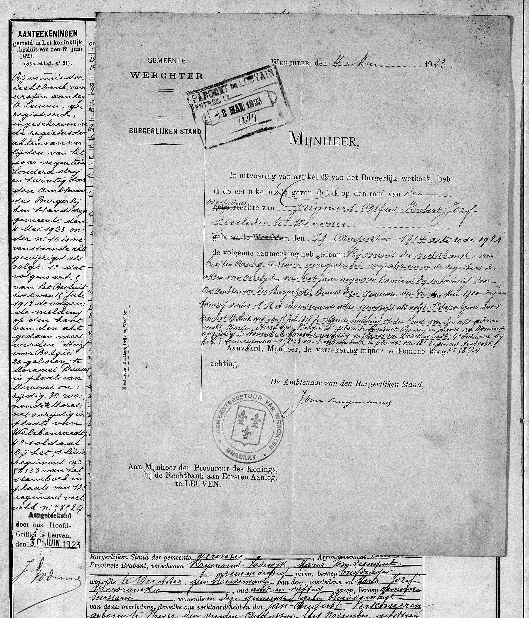 l'état civil de Werchter, VB, BE (1923) (Source [358])