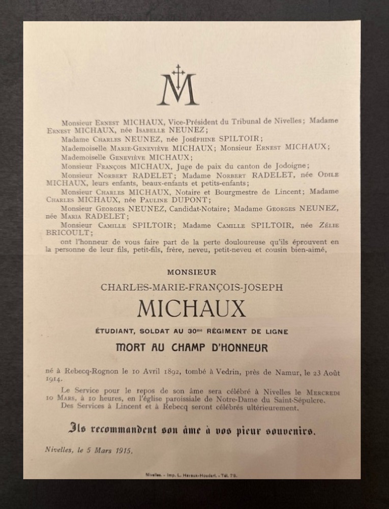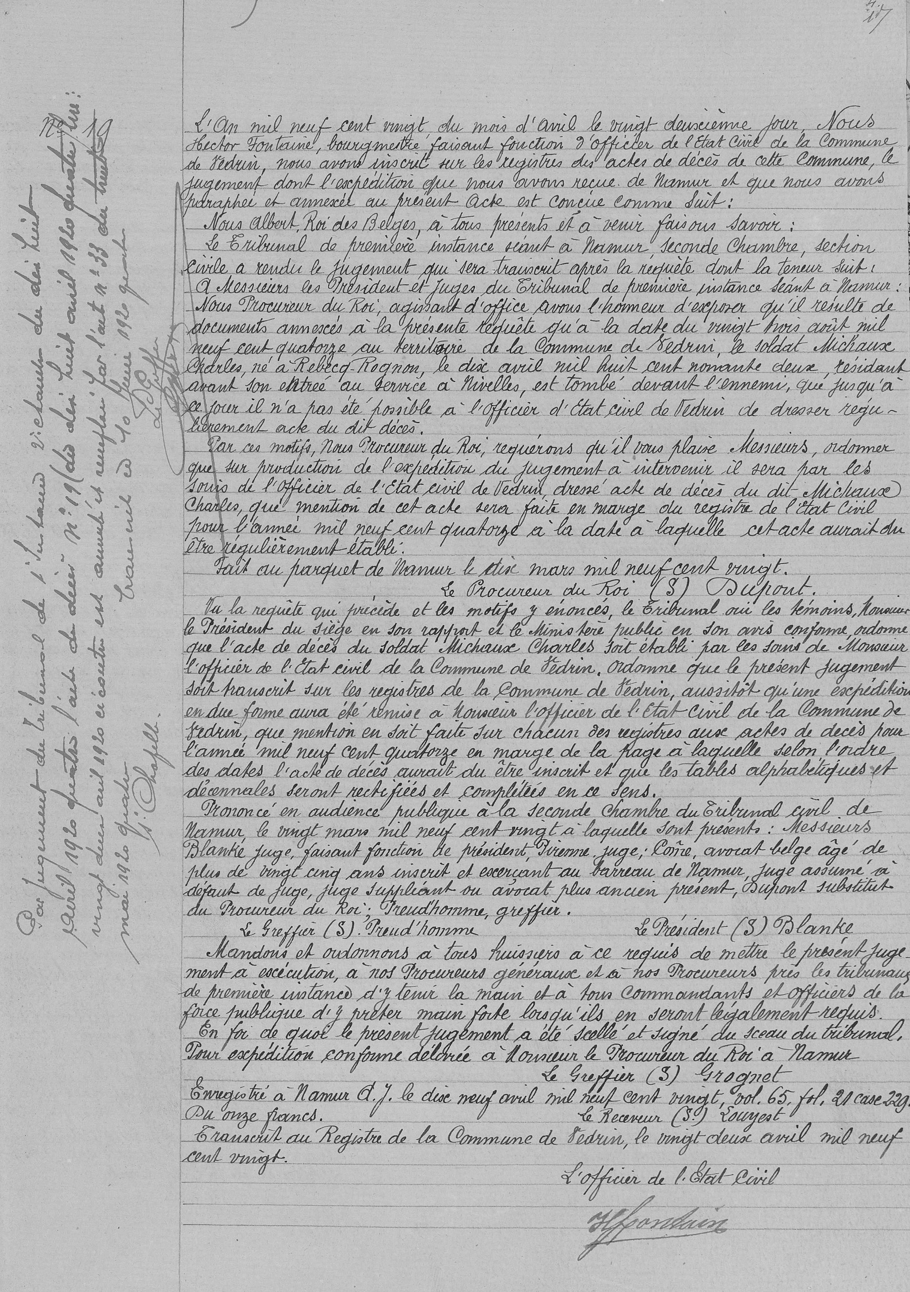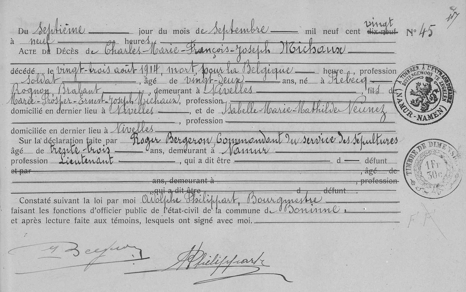 Acte de décès à Vedrin, NA, BE (Source [358]) (Télécharger l'image