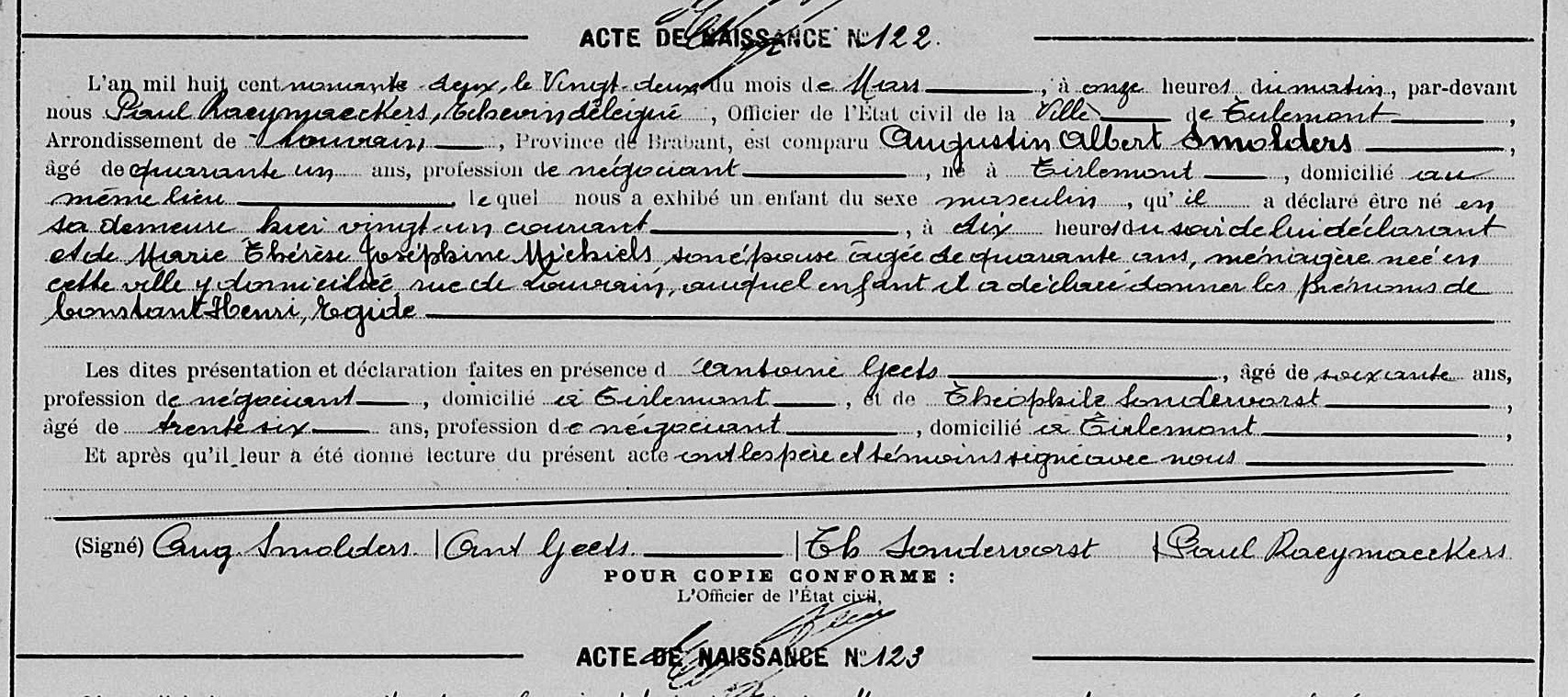 Geboorteakte te Tienen (Tirlemont), VB, BE (Bron [358]) (Het beeld