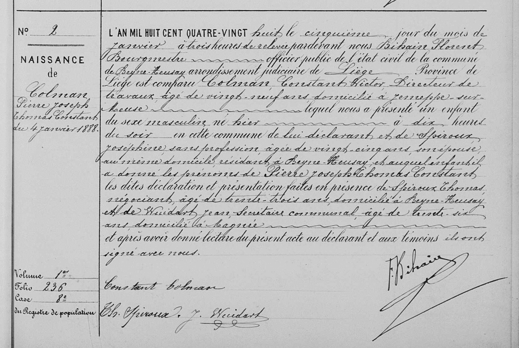 Acte de naissance à Beyne-Heusay, LG, BE (Source [358])£