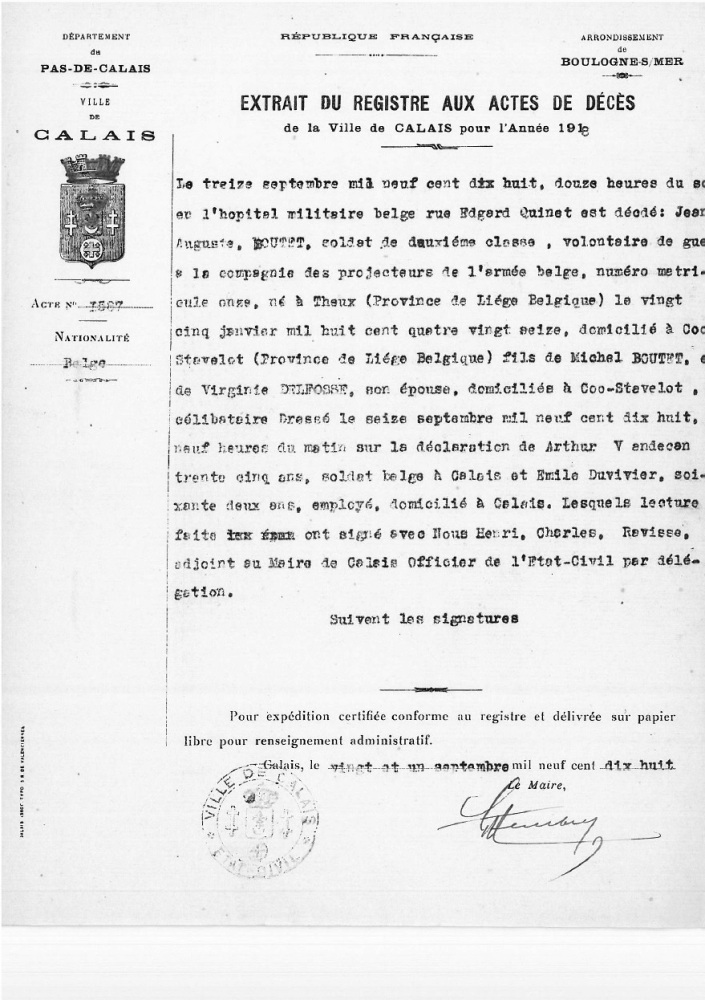 Acte de décès à Calais, Pas-de-Calais, FR