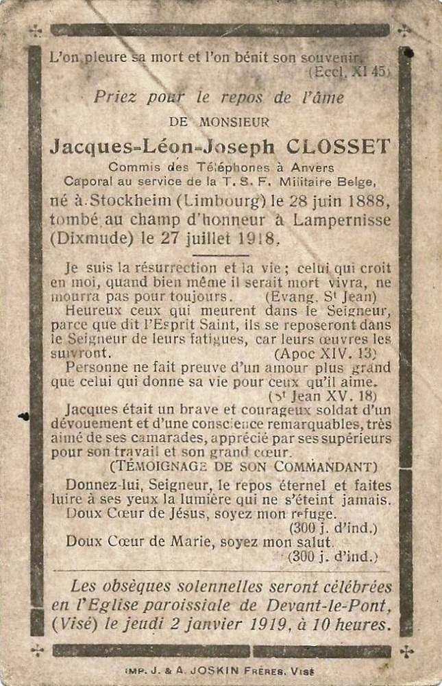 Le cercueil de Jacques CLOSSET se trouve au centre