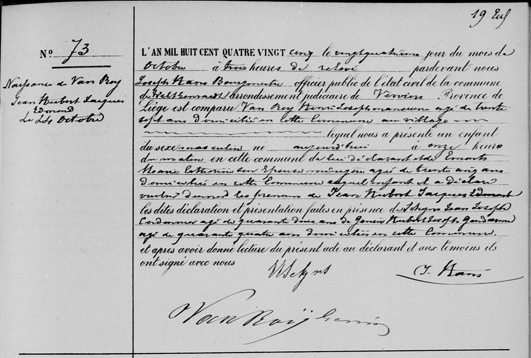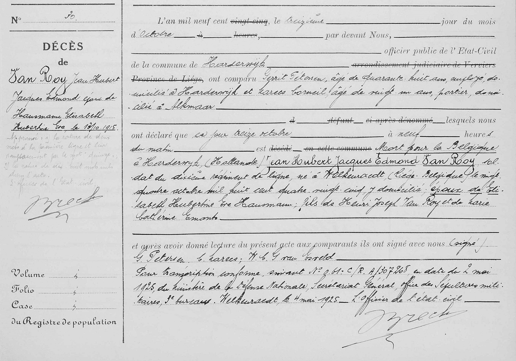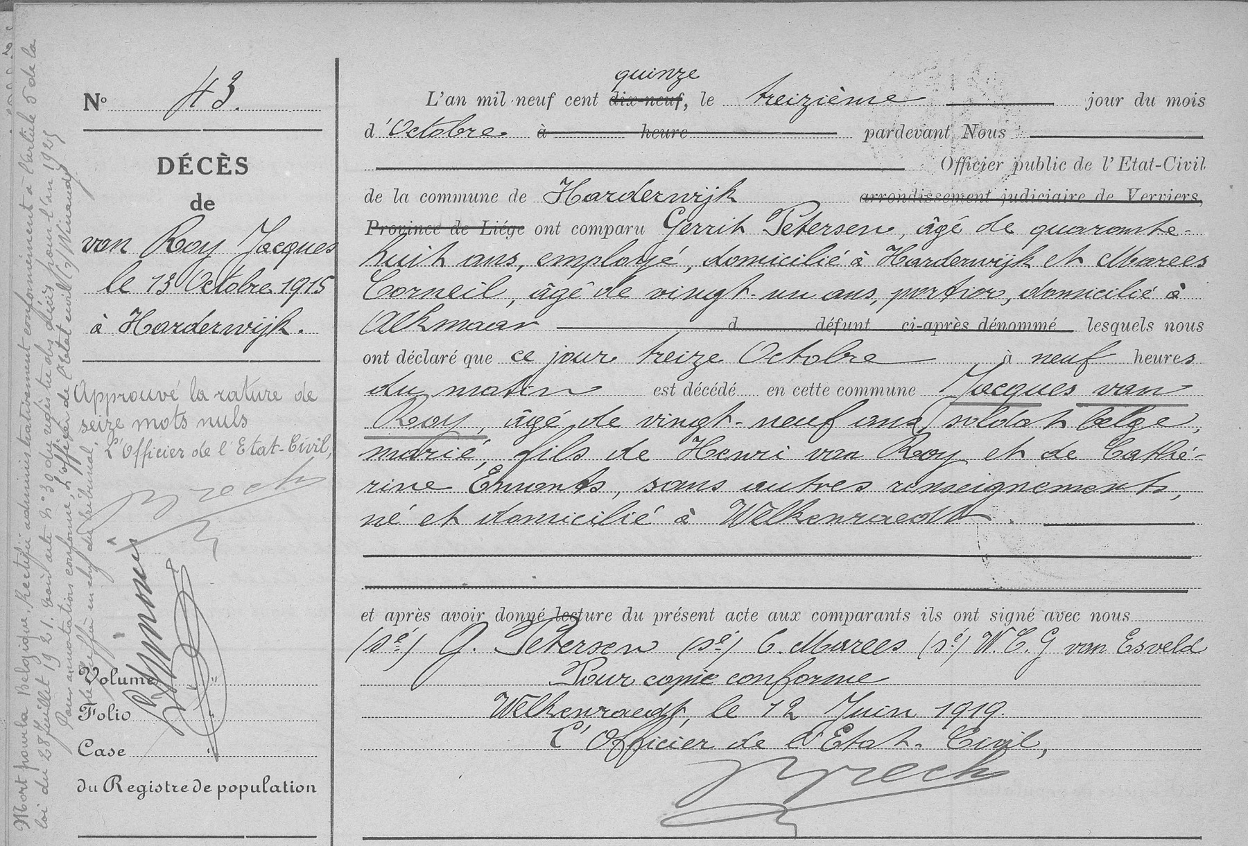 l'état civil de Welkenraedt, LG, BE (1919) (Source [358])