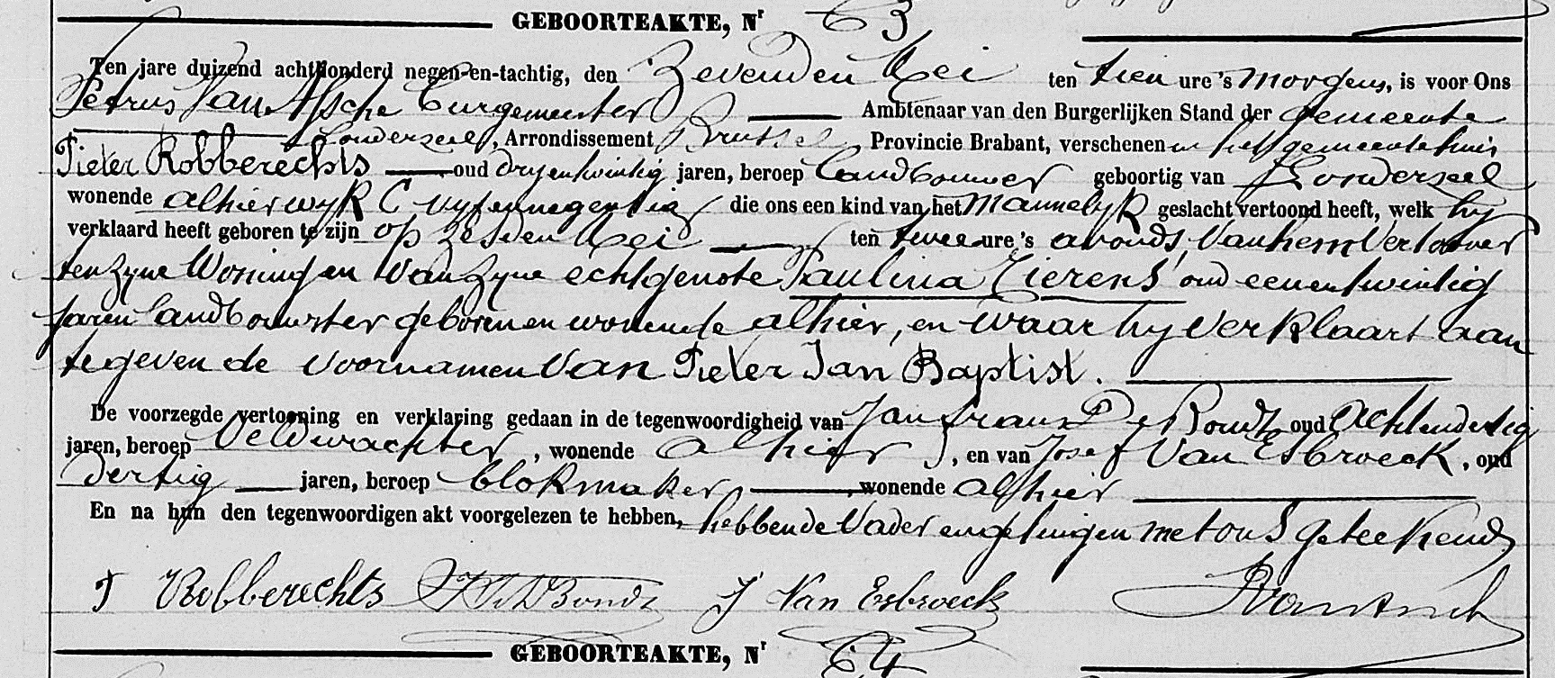 Geboorteakte te Londerzeel, VB, BE (Bron [358]