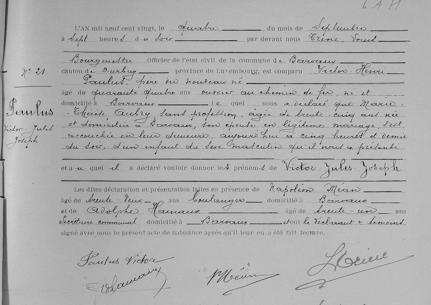 Acte de naissance à , BE (Source [358]) (Télécharger l'image pour la