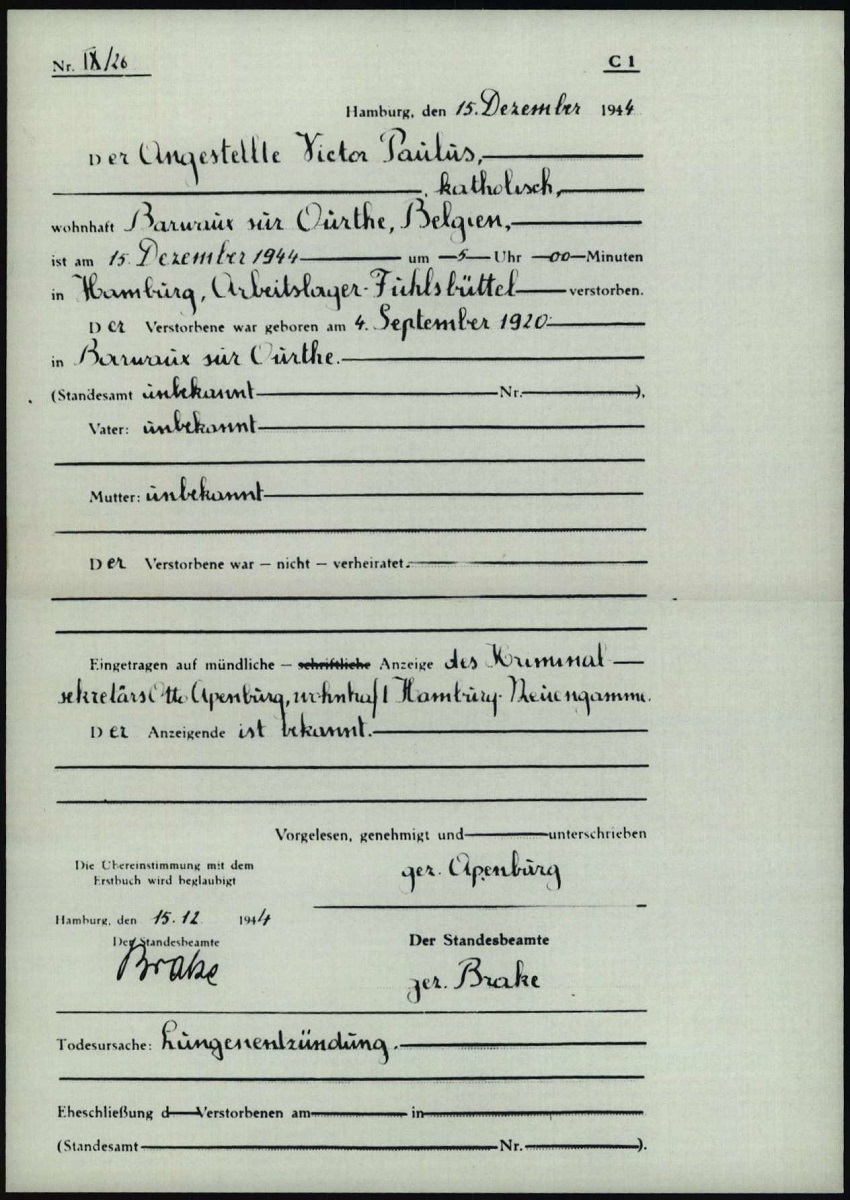 Acte de décès à Hambourg, DE (Source [358]) (Télécharger l'image