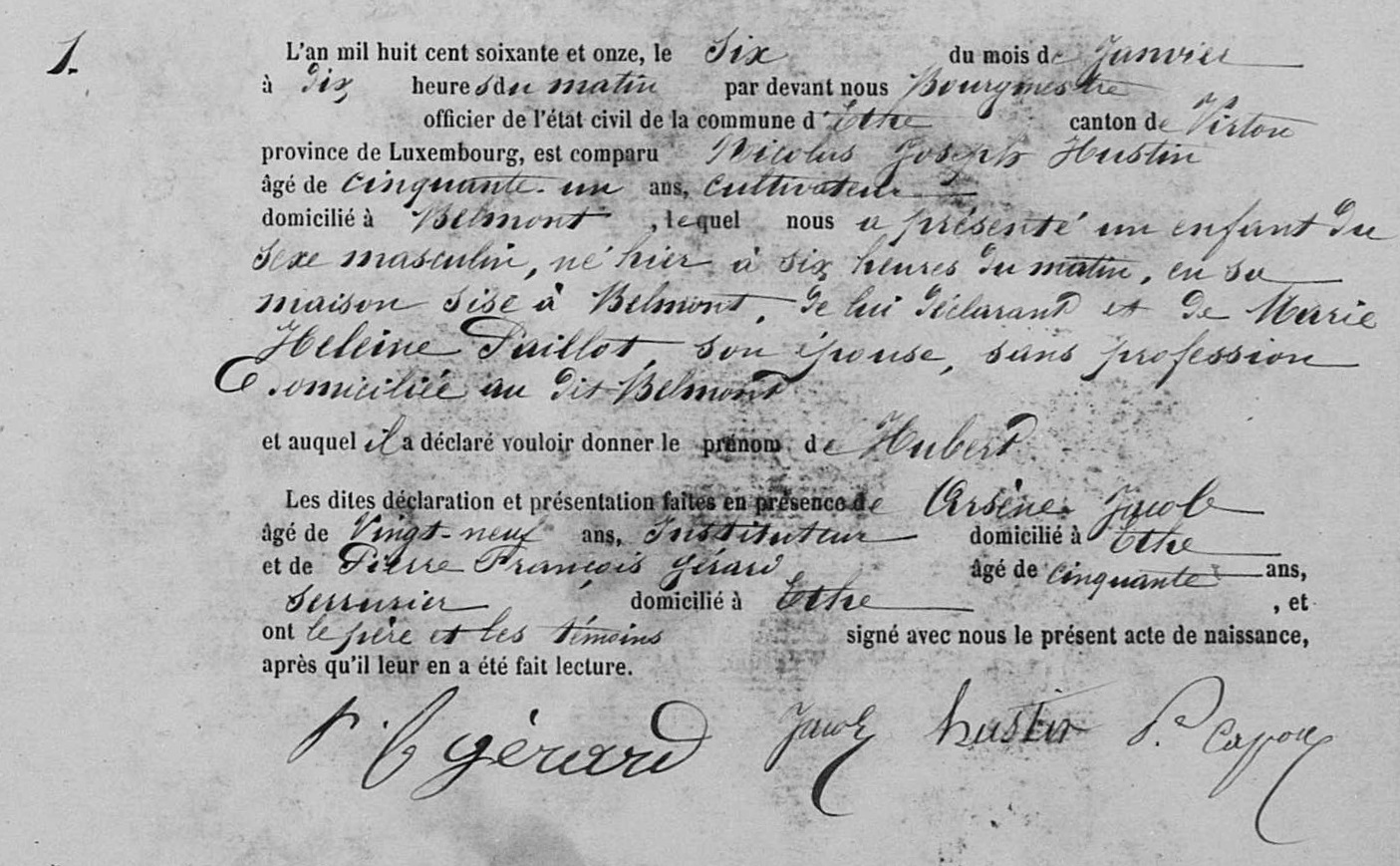 BE: Acte de naissance n° 1 (1871) (Source [358])