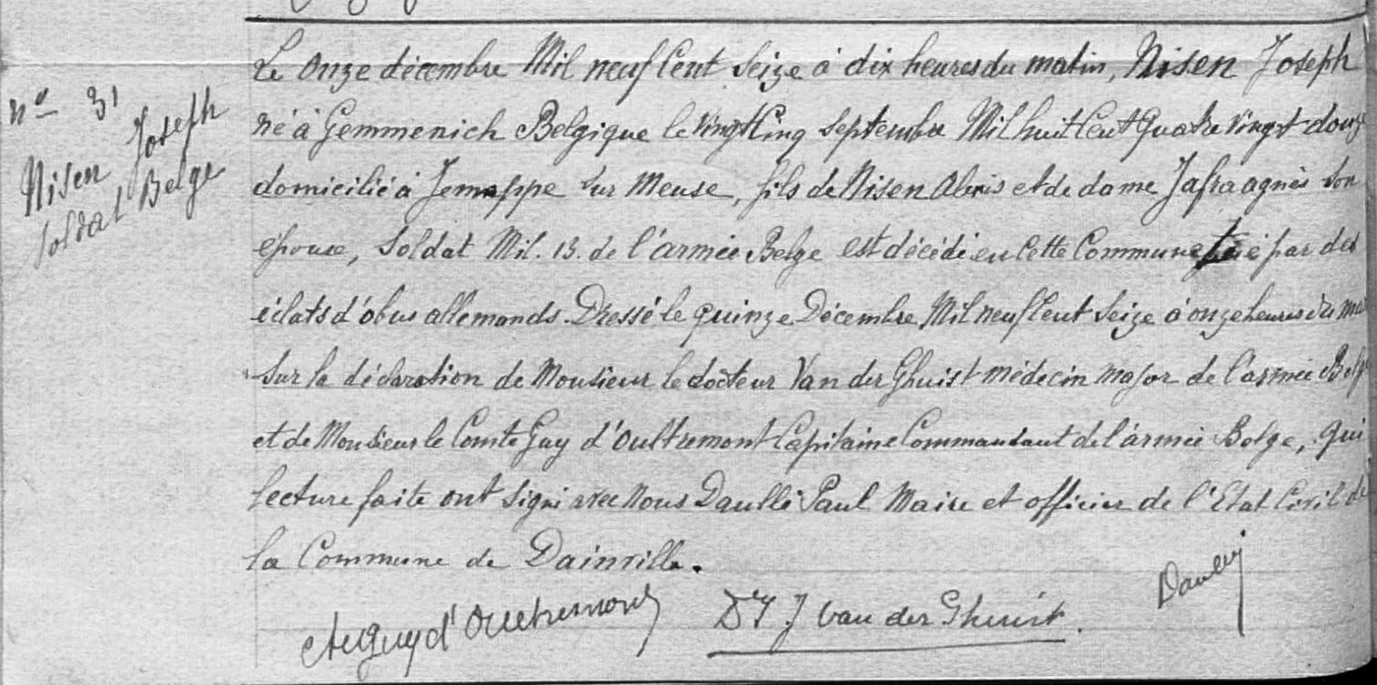 Acte de décès à Dainville, Pas-de-Calais, FR (Source: Archives
