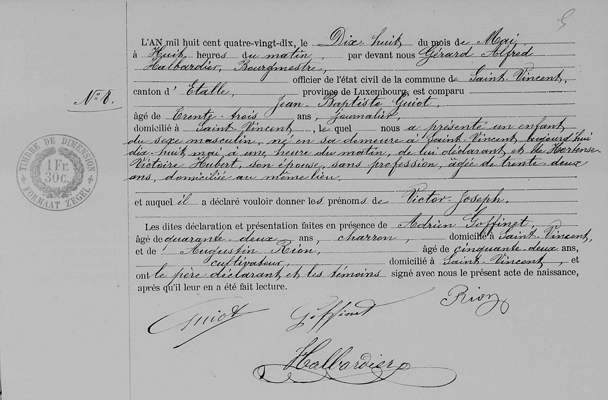 Acte de naissance à Saint-Vincent, LU, BE (Source [358])