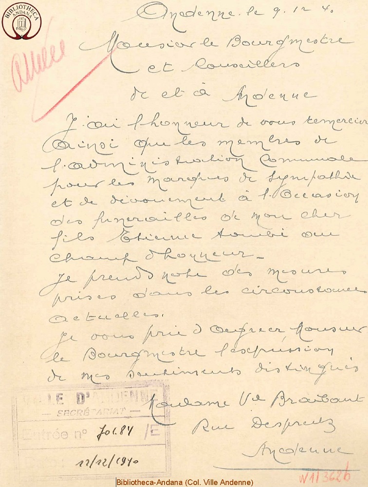 Martyrologe 1940-1945 à l'hôtel de ville de Andenne, NA, BE