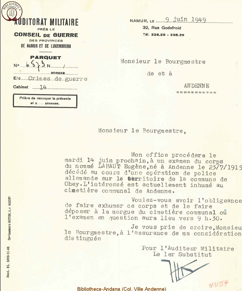 Martyrologe 40-45 de l'Hôtel de Ville de Andenne, NA, BE