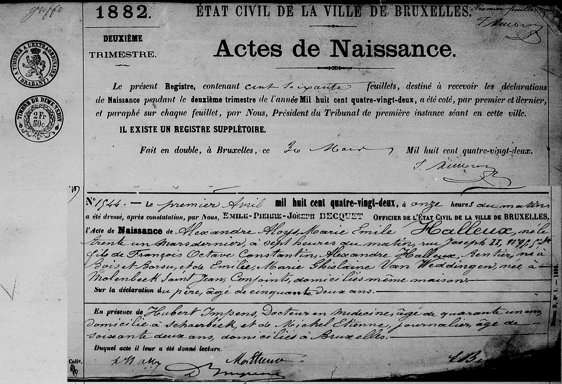 Acte de naissance à Bruxelles, BR, BE (Source [358])