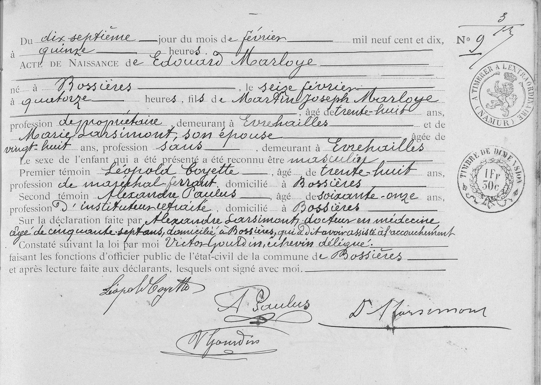 Acte de naissance (Source [358]) (Télécharger l'image pour la