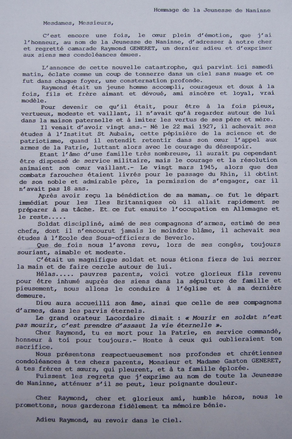 "Mémorial" Raymond GENERET (Musée des Chasseurs ardennais, camp
