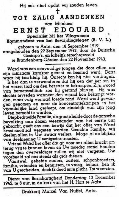 Aalst (Alost), OV, BE, bidprent voor zes terechtgestelde