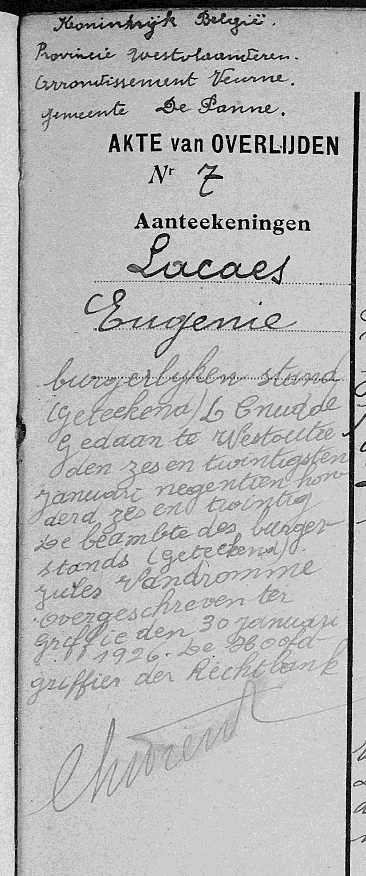 Vonnis houdende verklaring van overlijden - Burgerlijke stand van