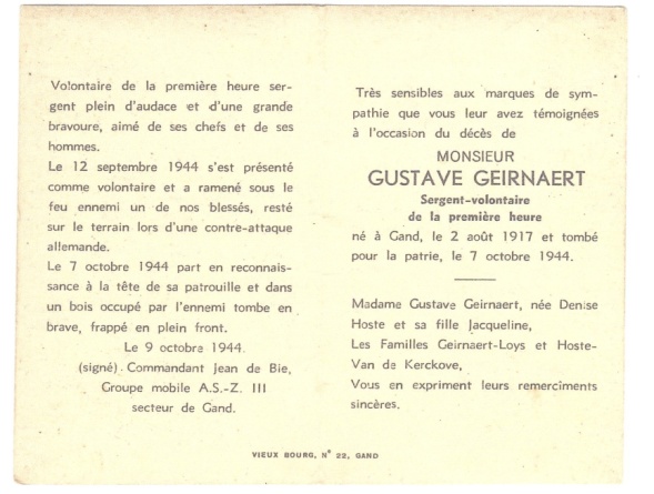 Begrafenis van Gustave GEIRNAERT (1944 (Bron [374])